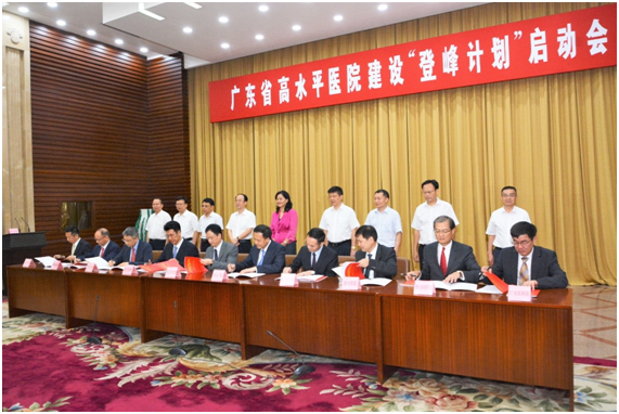 6月6日上午,在广东省高水平医院“登峰计划”启动会上,广东省卫生计生委与首批9家重点建设医院签署《目标管理责任书》。我校附属医院进入“登峰培育单位”建设序列,也是粤西地区唯一一家入选医院,3年内将获省财政3个亿的建设资金投入。