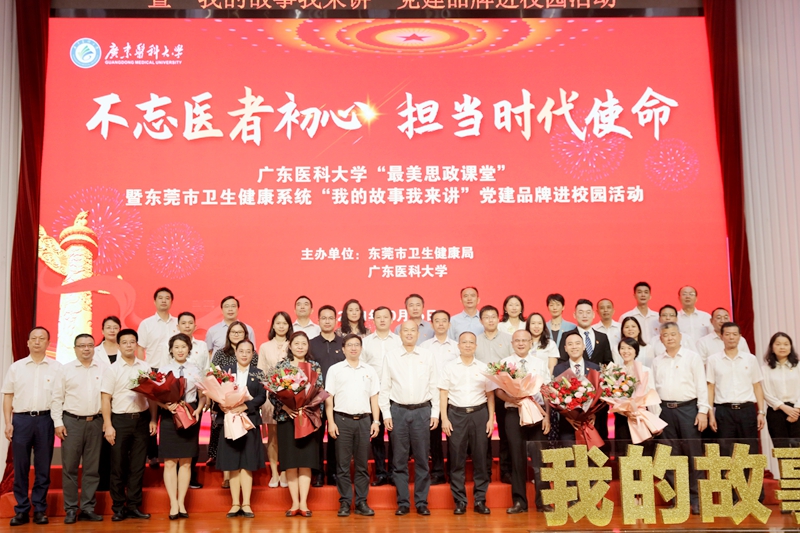 10月15日晚,东莞市卫生健康局与广东医科大学共建“最美思政课堂”暨“我的故事我来讲”党建品牌进校园活动中,东莞市6位“最美医生”“最美护士”代表以生动故事构成的“最美思政课堂”,令广东医科大学全体师生和医护员工深受触动,现场35次掌声凝聚了师生们的敬意。一万多名在校师生在各分会场,实习点学生、专升本学生在各教学点,7所附属医疗单位的医护员工在本单位收听收看。