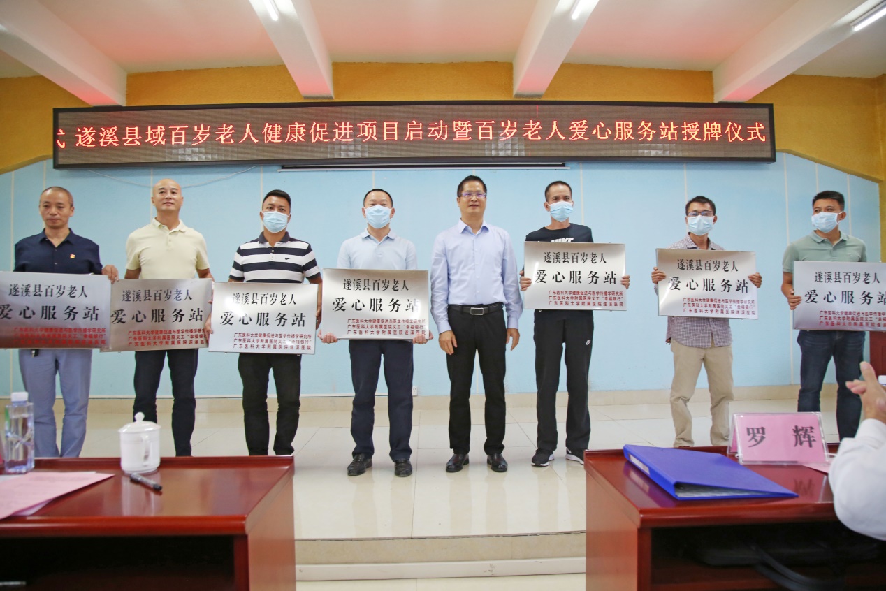 百岁人生,百年沧桑,一位百岁老人就是一部浓缩的中国人的命运交响曲。他们见证时代的发展,也经历中国的变化,他们的经历,就是一个个鲜活生动、有深度、有温度的好故事,他们走过一个世纪。而百岁老人所特有的长寿基因、以及他们的生活习惯、日常饮食、情绪心态等,也值得去探究和深入了解。10月31日上午,遂溪县县域百岁老人健康促进项目启动暨百岁老人爱心服务站授牌仪式在广东医科大学附属医院遂溪医院(以下简称遂溪医院)第一会议室顺利举办。会议由遂溪医院院长邓烈华教授主持。