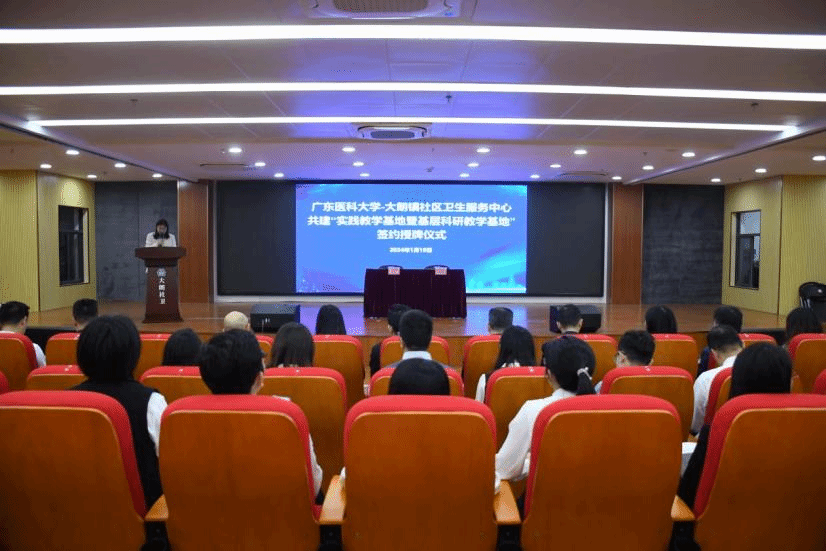 2024年1月19日上午,广东医科大学与大朗镇社卫中心共建“实践教学基地暨基层科研教学基地”签约揭牌仪式隆重举行。揭牌仪式由大朗镇卫生健康局局长彭衬儿主持。