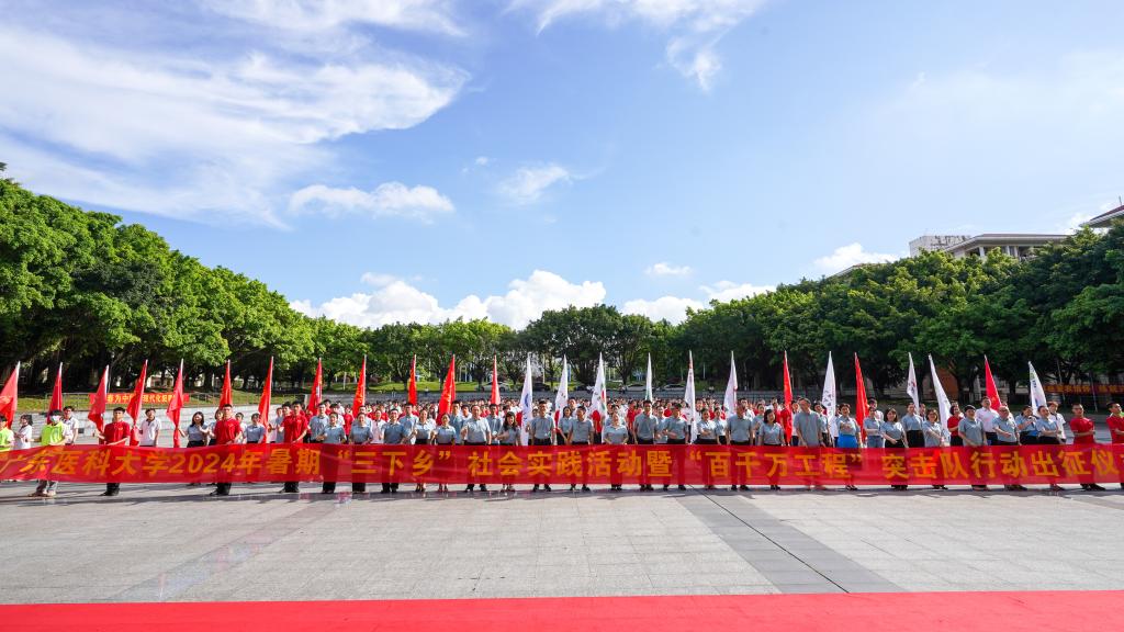 2024年7月4日,我校162支团队的3000多名学子将奔赴全国7个省份44个乡镇的田间地头,聚焦理论宣讲、高质量发展、“百千万工程”、健康中国等。在实践中学本领、做贡献、长才干,在挺膺担当中为推进中国式现代化注入广东医力量。