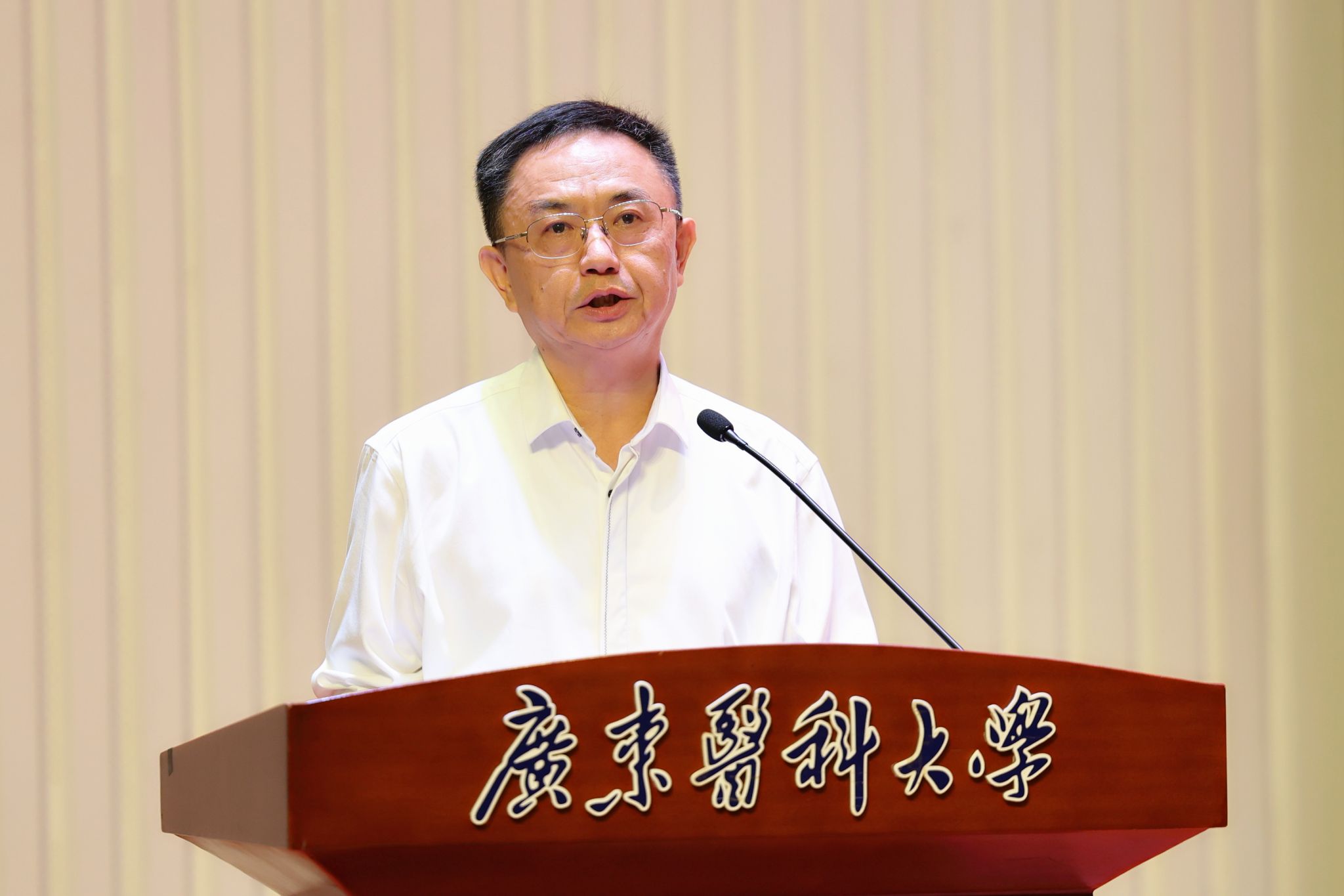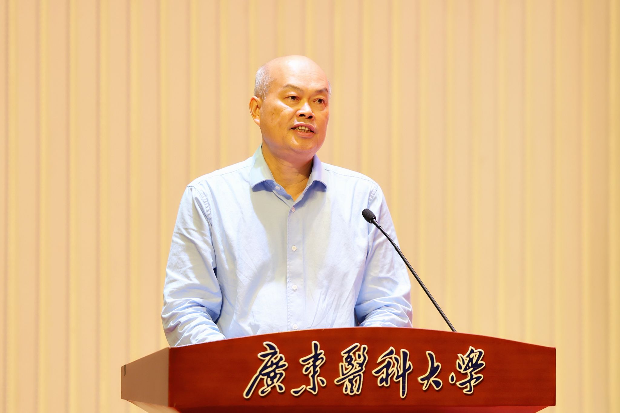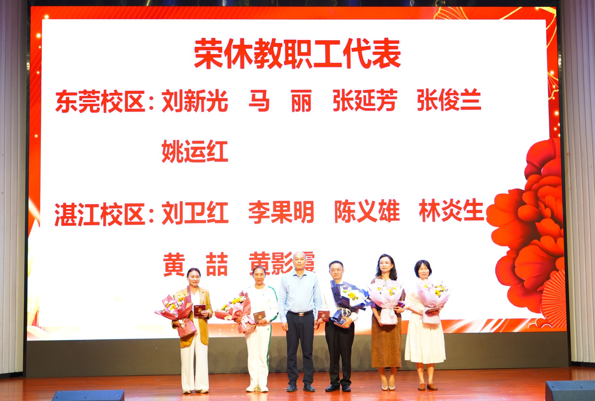 “31个春秋,从30岁到61岁,我的人生与广东医紧紧相连,这里是我奋斗的热土,更是我永远的家!”荣休教职工代表、原学校党委常委、副校长刘新光同志上台发言,话语里满是对学校的深情。他从一名普通讲师到学校副校长、全国模范教师、国务院特殊津贴专家,他的每一步成长都与广东医的发展紧密相连。——在教学一线,他深耕不辍,打造省级一流本科课程、国家级线下一流本科课程,主编教材,让优质教学资源惠及更多学子;在学科建设中,作为专业负责人,牵头建设了全国第一批国家级特色专业建设点和全国第一批国家级一流本科专业;深度参与助力学校冲击博士学位点,最终圆了广东医人的“博士梦”;。“以热爱为底色,把职业当事业;以集体为基石,在奉献中成长;以服务为初心,用理解凝聚合力”刘新光同志分享了三句感悟,字字珠玑,既是他31年工作的总结,更是对后辈的殷切嘱托。他声音哽咽却言辞坚定:广东医人的身份,是我最骄傲的标签!为学校“发光发热”,是我不变的初心!