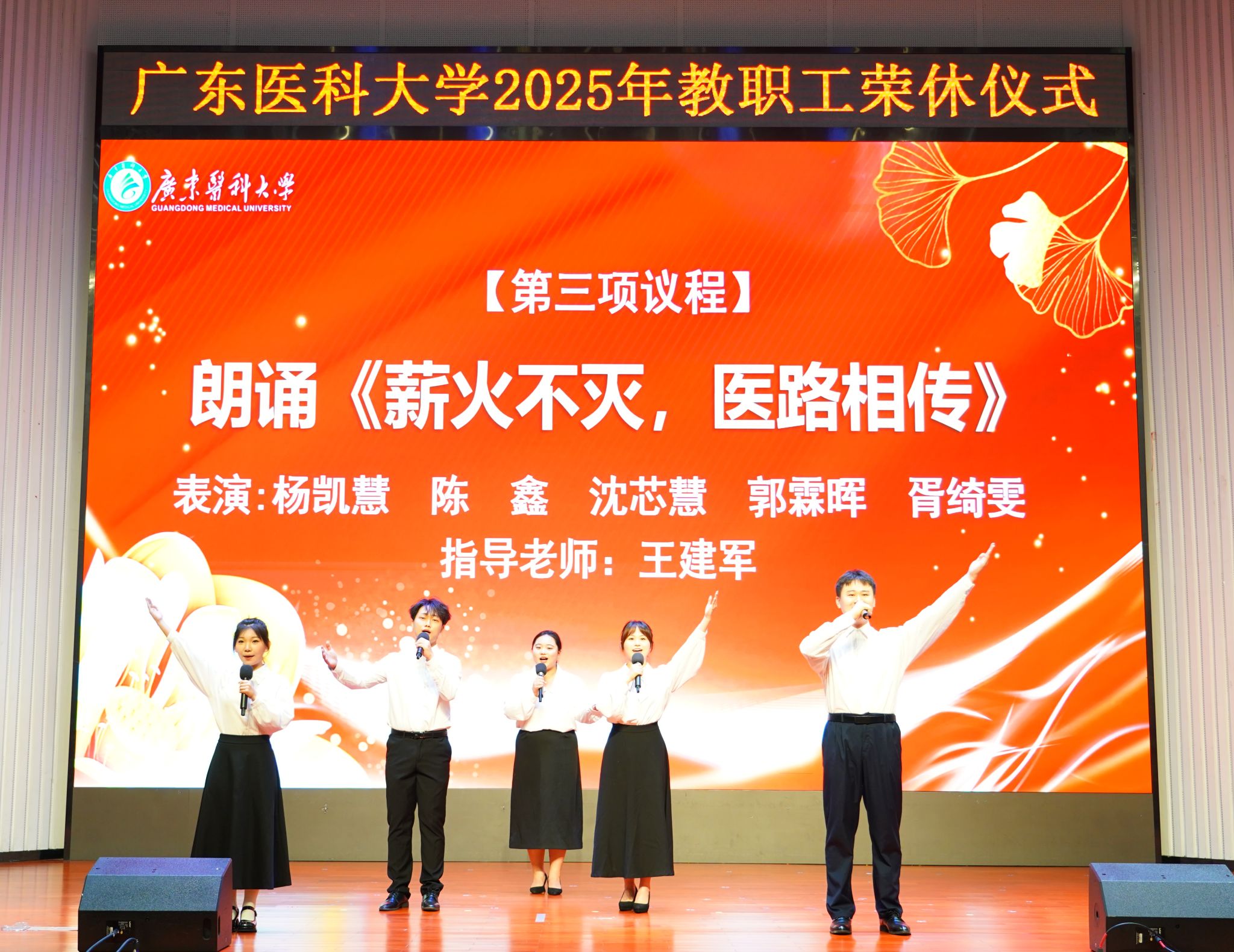 随着荣休专题片的画面流转,时光仿佛按下了回溯键。有人站在讲台 40 载,有人坚守岗位 30 秋,黑板上的医学知识脉络、实验室里的数据结论、财务报表的数字资金、设备管理的细节维护,均见证了学校从霞山一隅到双湾区辉映的蝶变。“一擦一写皆成序,执起便风雨兼程”,是他们对讲台的深情告白;“接过磨圆的粉笔,续燃教育星火”,是青年教师接过的坚定誓言。如今,他们将祝福融进期盼里,让广东医的育人故事,在岁月传承中愈发绵长。