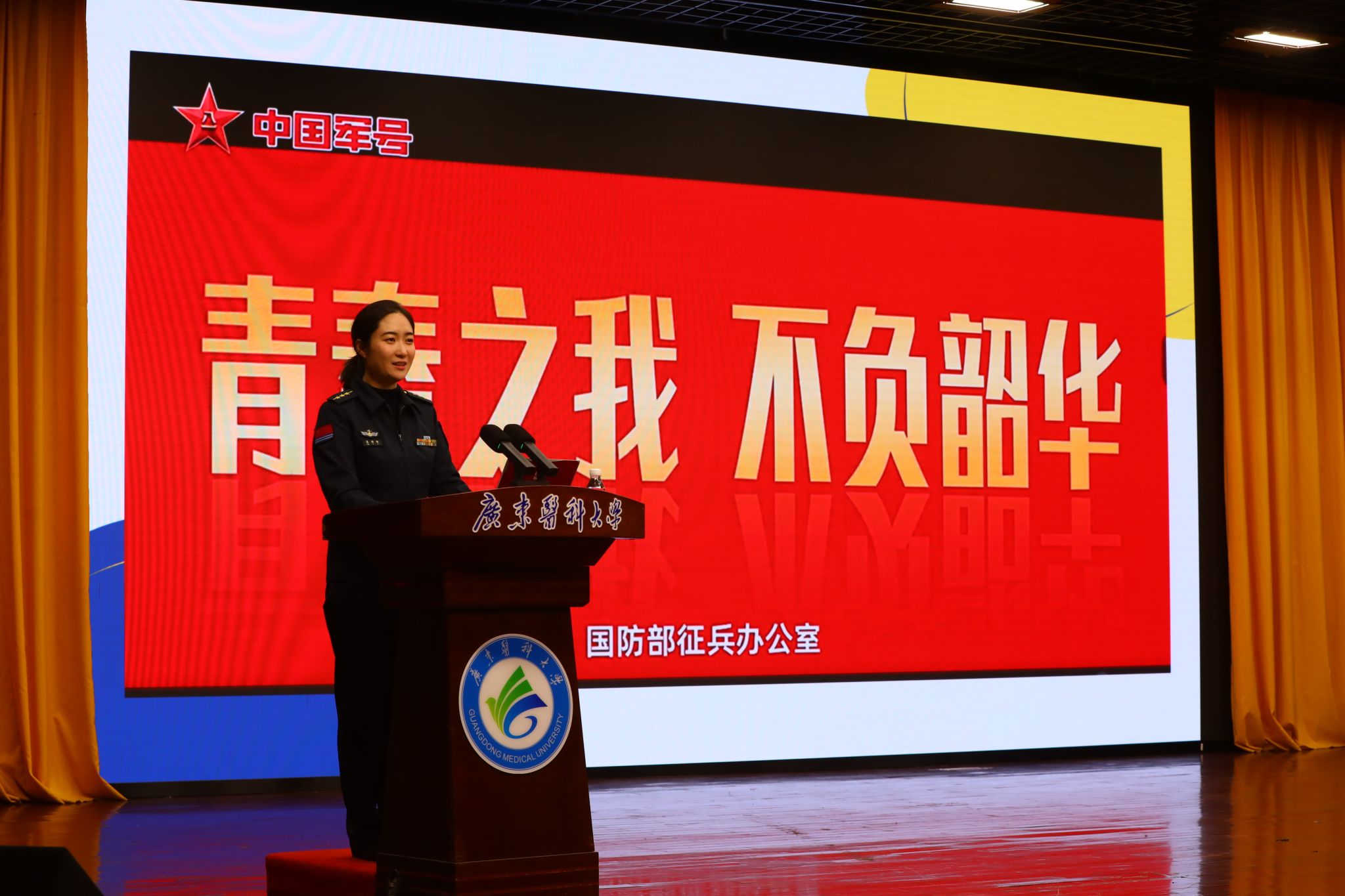 当晚,2026年春季征兵宣讲会在新教学楼9楼报告厅举行,由学校保卫部(武装部)韦荣寒主持,海军某部、霞山区人民武装部相关领导,各学院党委副书记、辅导员及学生代表参会。韦荣寒在开场中强调,国防是国家根本,大学生参军入伍是时代责任,更是成长历练的重要途径。
