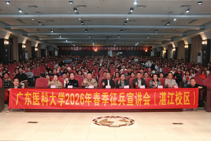 为响应国家征兵号召,点燃青年学子参军热情,2026年1月13日,广东医科大学湛江校区联动霞山区人民武装部开展系列春季征兵宣传活动,下午的校园设点咨询与模拟轻武器射击体验点燃现场氛围,晚间的征兵宣讲会深化政策解读,全方位激发学子携笔从戎之志。