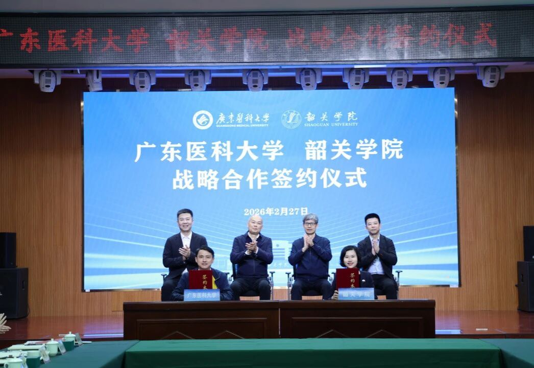 2月27日下午,广东医科大学与韶关学院在明德区蔡志明楼一楼智慧课室举行战略合作签约仪式。