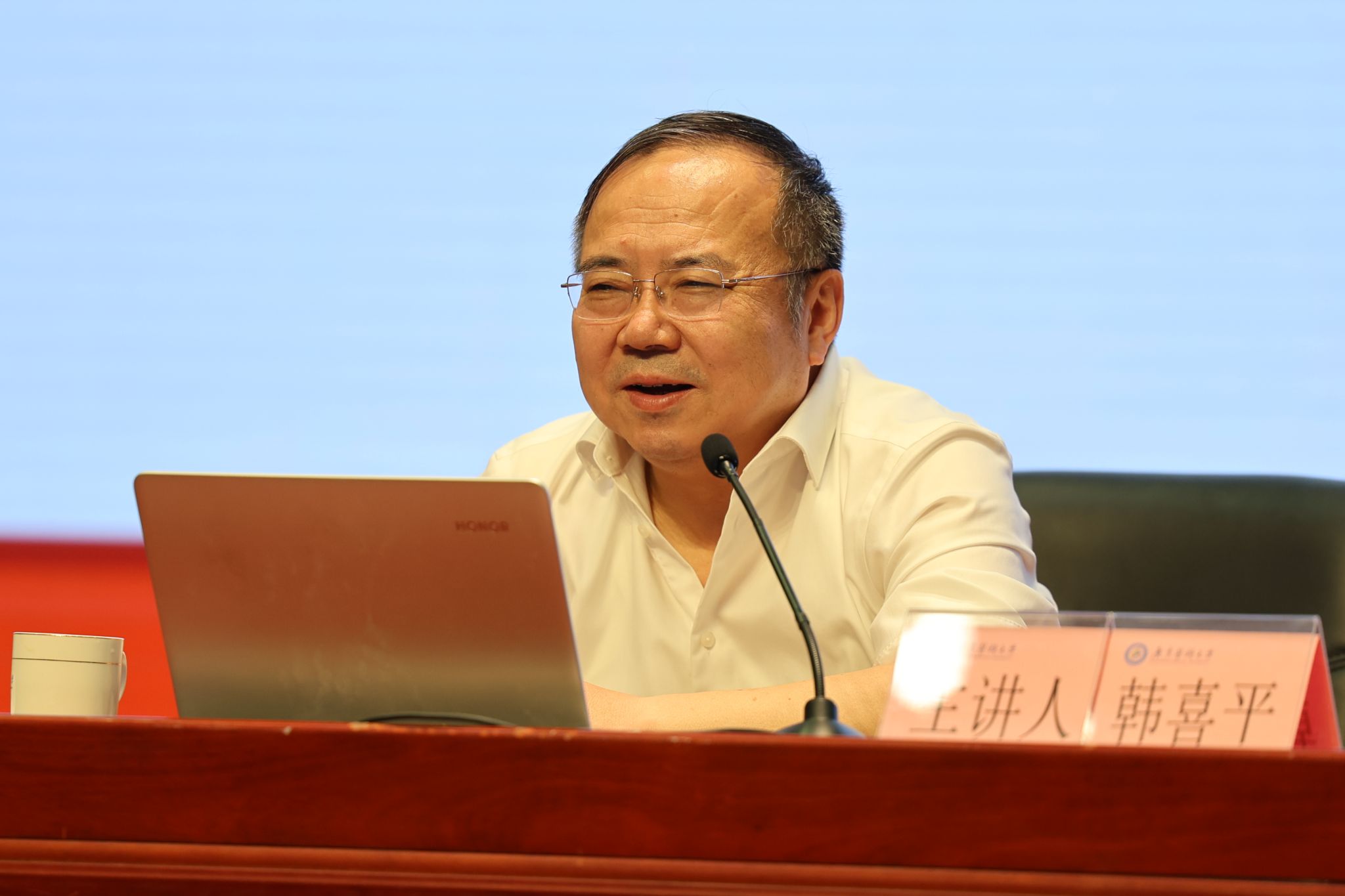 研讨班专题报告第二讲特邀吉林大学中国特色社会主义理论体系研究中心主任、马克思主义学院博士生导师韩喜平教授主讲,学校党委副书记、校长肖炜同志主持。韩喜平教授以《五年规划与中国共产党的领导》为题,系统梳理中国共产党领导五年规划的历史脉络,深入阐释内在逻辑与制度优势,深刻解读“十五五”期间教育改革发展重点任务,明确推进规划实施、服务国家战略的具体要求。
