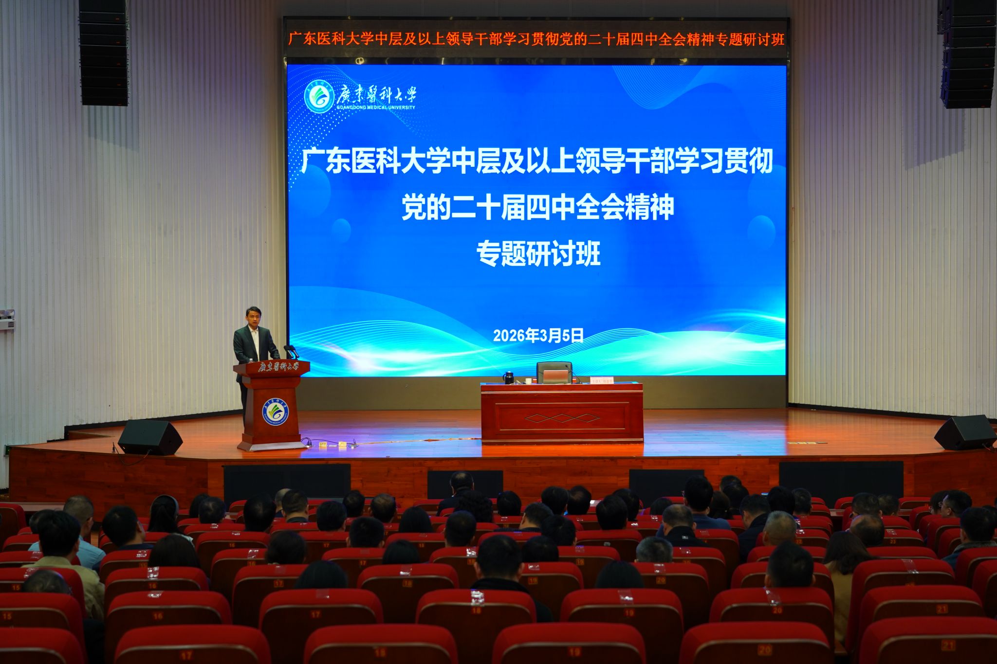 本次研讨班以习近平新时代中国特色社会主义思想为指导,紧扣党的二十届四中全会精神学习贯彻主线,坚持理论联系实际,融合专家辅导、分组研讨、个人自学等多种形式,推动全校领导干部把思想和行动统一到党中央决策部署上来,牢固树立和践行正确政绩观,坚守为党育人、为国育才初心使命,切实把学习成果转化为谋划“十五五”发展的具体思路、推动高质量发展的务实举措,以实干实绩为学校五年发展开好局起好步,为教育强国建设和健康中国战略实施贡献广东医科力量。(文/组织部 图/宣传部 初审/王丽君 复核/裴金涛 审发/杨海云)