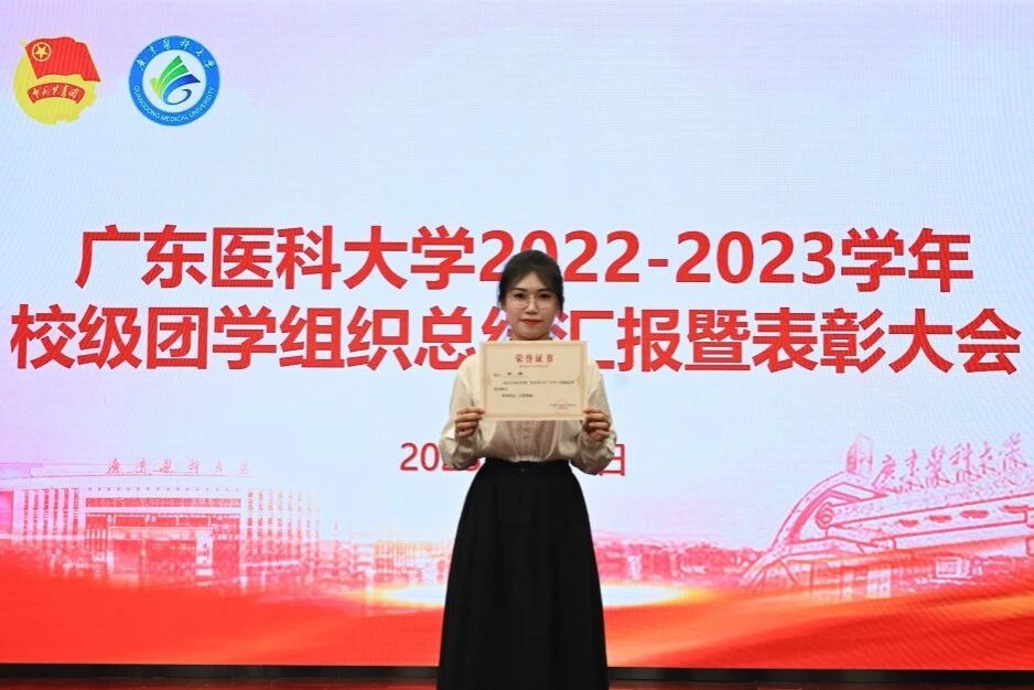 曾获广东医科大学“学生干部模范奖”、第十七届“挑战杯”广东大学生课外学术科技作品竞赛红色专项赛三等奖等多项奖项,累计获国家、省、校、院级等荣誉34项,校团委述职评议考核、连续四年团员教育评议及班委考核结果均为优秀,i志愿服务时长972+小时。