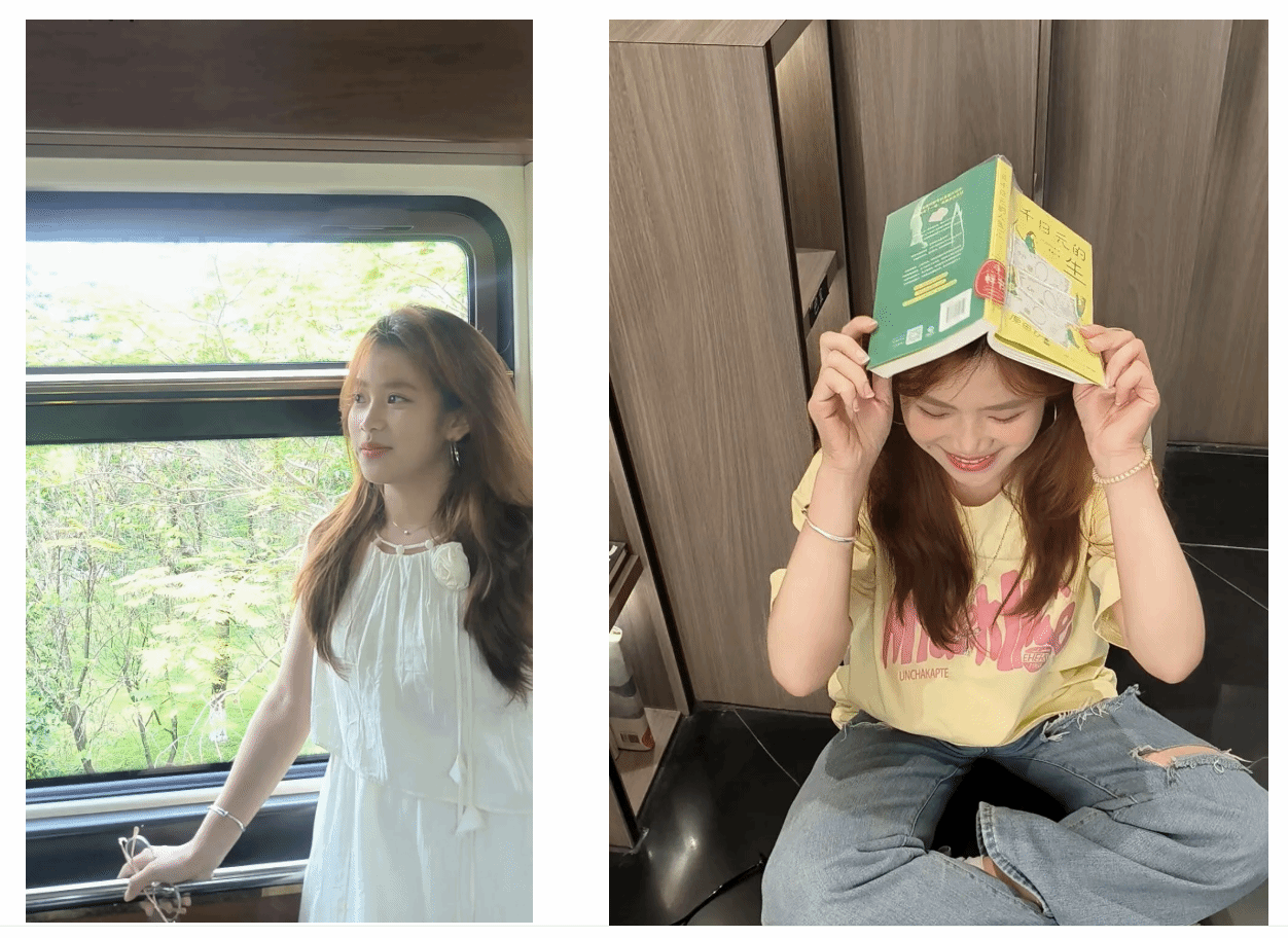 舞台之外,她始终保持对艺术与生活的热爱——喜爱在阅读中沉淀思考,从文学到社科,在文字中开阔视野、滋养心灵;也乐于走向山川湖海,在旅途中感受自然、积累见识。