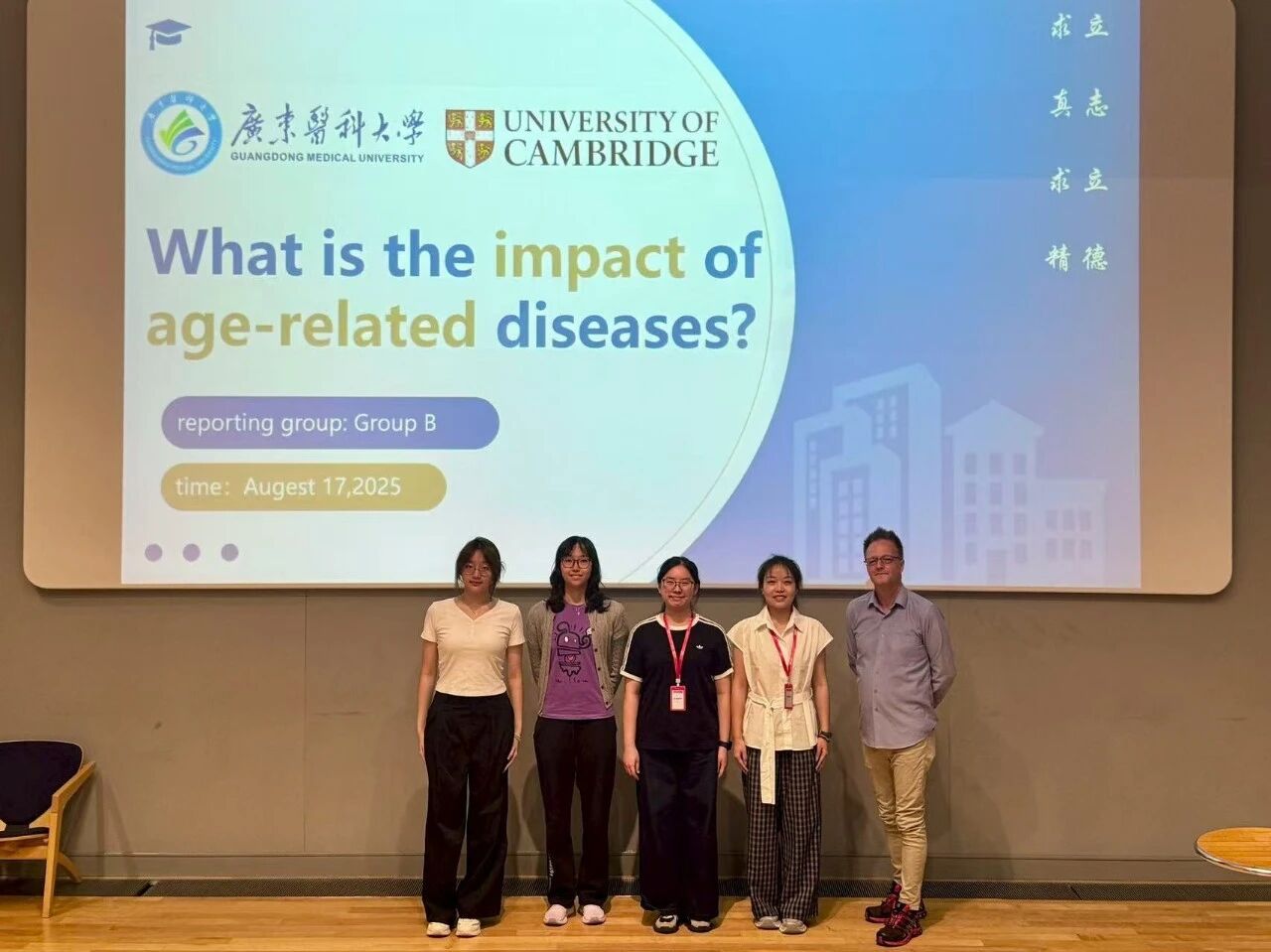 2025年暑假,她参加了广东医科大学与剑桥大学联合开展的学术交流项目。在为期数周的学习中,她系统学习了遗传过程、细胞代谢等基础医学核心内容,夯实了专业理论基础;同时也近距离接触并了解了人工智能技术在医学影像分析、疾病预测、精准诊疗等领域的前沿应用,拓宽了医学视野,深刻认识到多学科交叉对现代医学发展的重要意义。在项目结业演讲比赛中,她所在小组围绕《老年相关疾病的影响》这一主题展开汇报。在组长的统筹安排与团队成员的默契配合下,他们凭借完整的内容结构、严谨的学术逻辑和流畅的现场展示,最终在众多小组中脱颖而出,荣获演讲比赛冠军。“梁彦熙一直是乐团里最自律、最踏实的孩子之一,哪怕要兼顾高强度的学业和兴趣的体育训练,也从来没有放松过乐团的排练和练习,她用行动告诉我们:真正的优秀,从来不是单一维度的发光,而是在热爱的每一个领域,都拼尽全力做到最好。”管乐团指导老师周彦冰给予了梁彦熙很高的评价。