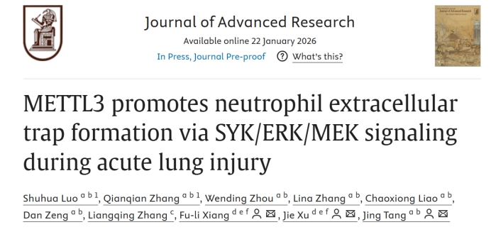 本研究将m6A修饰与中性粒细胞的效应功能紧密联系在一起,为研究其他表观遗传修饰在先天免疫中的作用提供了范式临床/应用价值目前METTL3抑制剂(如STM2457)已在血液肿瘤领域展现潜力,本研究拓展了其在急性炎症性疾病中的应用前景。未来,针对SYK或METTL3的精准干预可能成为ALI及脓毒症治疗的新策略。